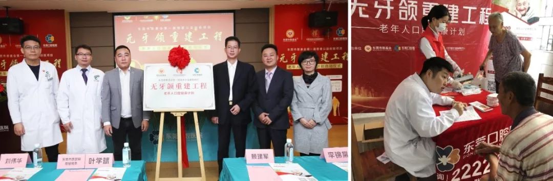 2017年至2019年,连续三年成为东莞市儿童口腔疾病综合干预项目(窝沟封闭)定点单位,先后走进9所校园累计共为近10000名儿童进行沟封闭治疗;2019年2月,与东莞市慈善会、东莞市启信公益慈善服务共同启动了东莞市慈善会首届慈善公益创投资助项目《无牙颌重建工程·老年人口腔健康计划》,为东莞牙缺失市民提供关爱援助,帮助他们重拾口福,提高生活质量。
