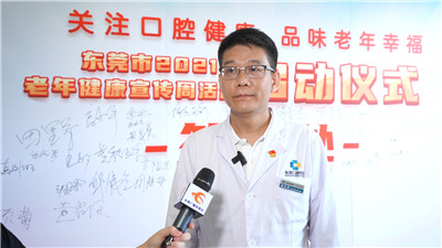 启动仪式结束后,东莞口腔医院院长袁东辉接受了东莞广播电视台的采访,他进一步强调口腔健康影响全身健康,龋齿、牙周病、口腔粘膜疾病等口腔疾病困扰着许多老年人,而我们的奋斗目标是“8020”,也就是到了80岁,仍有20颗可以正常行使功能的牙齿。我院将积极配合市卫健局的总体规划,借此次活动大力宣传老年人口腔健康知识,肩负起“打造健康口腔,健康中国”的社会责任。
