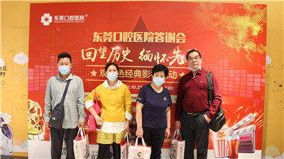 10月以来,东莞口腔医院全面开展2021年‘敬老月’活动,大力弘扬中华民族尊老、敬老、爱老的传统美德,引导全社会关爱老年人口腔健康并落实好相关老年优待政策,让老年人共享改革发展成果,乐享幸福晚年。此次红色经典观影展,不仅仅是让群众了解军人为国家和人民前赴后继、不畏生死的英勇事迹,还在于为老年人提供多种形式的福利,让他们“老有所乐”,享受健康快乐生活。接下来我院将在党支部的指导下,紧紧围绕“为群众办实事”的工作理念,持续开展多样化的老年人口腔健康宣教活动,实施多项老年人就诊优惠政策,为国家老龄事业发展贡献力量。