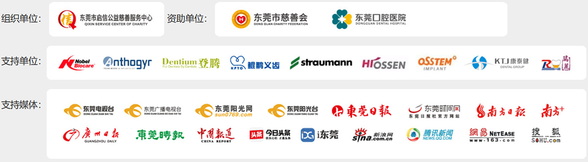 为了更好促进东莞市的慈善公益事业发展,在政府相关部门组织及东莞市慈善基金会的带领带动下,作为东莞市首届慈善公益创投资助项目中中心落实的公益项目之一,“无牙颌重建工程·老年人口腔健康计划”达到了东莞市启信公益慈善服务中心的大力支持! 除此之外,东莞市口腔医师协会、南城社区卫生医疗服务中心作为本项目的技术支持单位,提供专业监督、规范技术指导。
